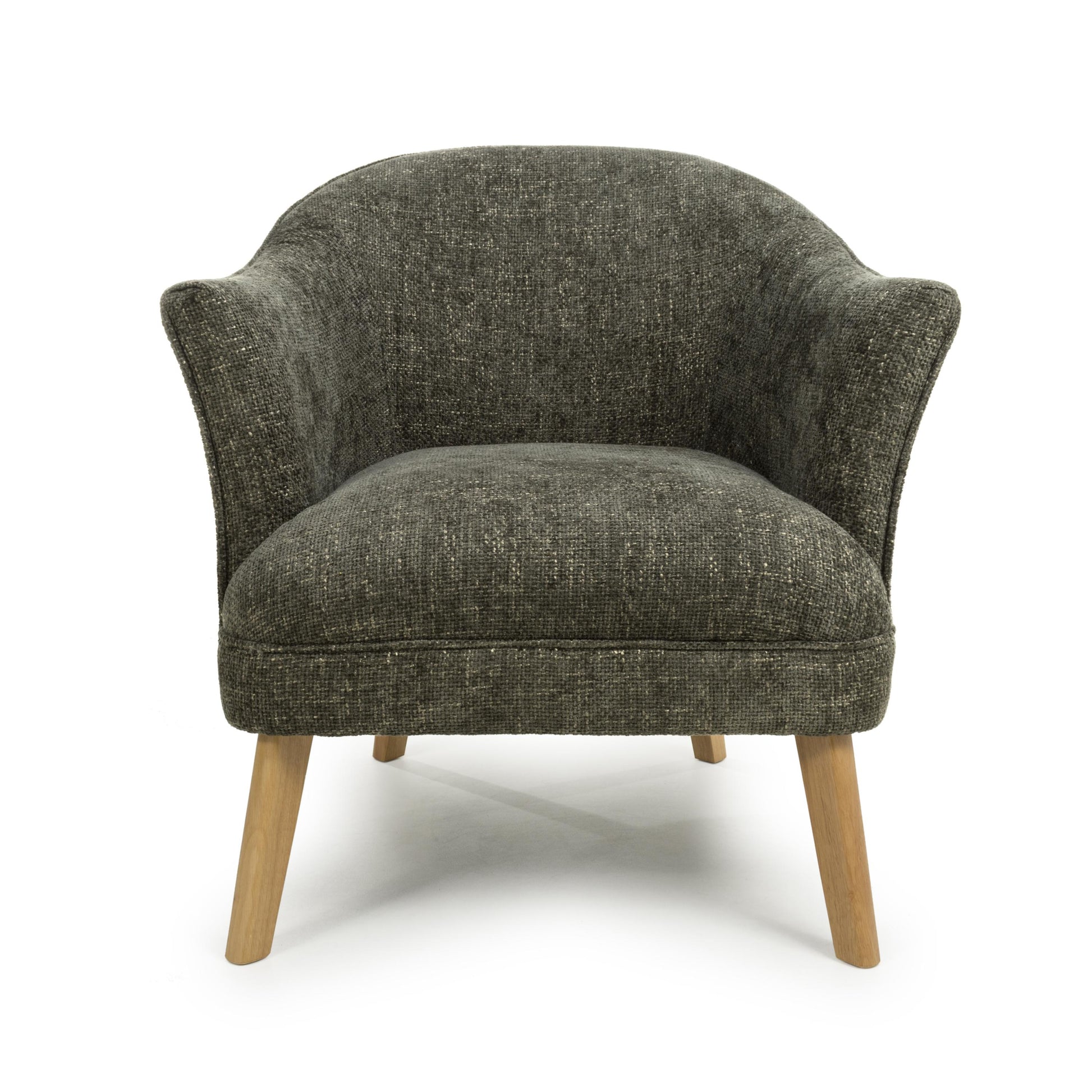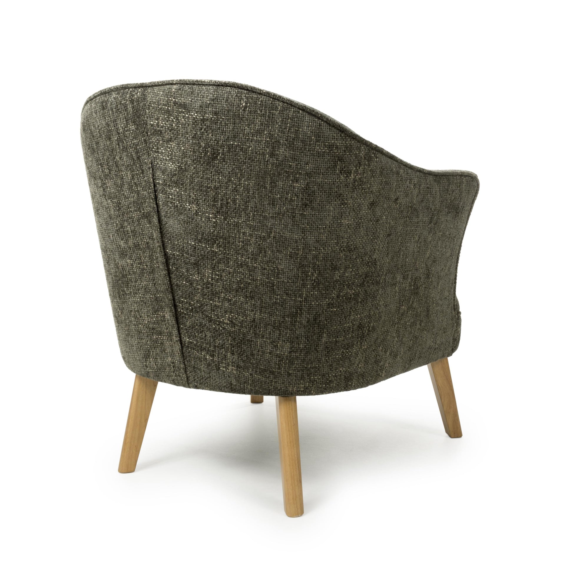 A curved wing armed armchair, upholstered in soft, tactile green flax effect fabric. The gentle curves and sloped back combine with ample plush padded cushioning for the ultimate in comfort. Completed by sturdy natural rubberwood legs. Leg assembly required.