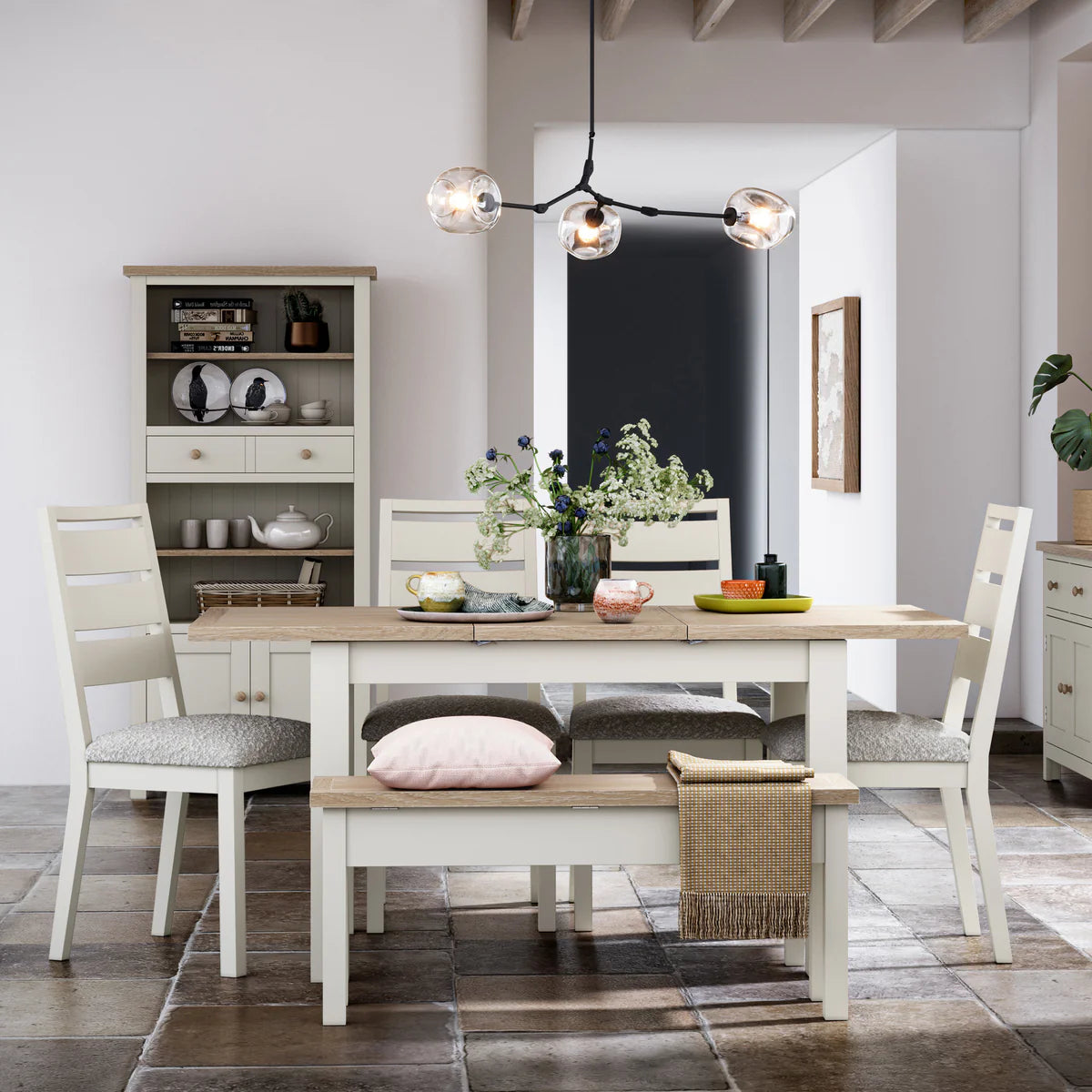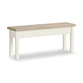 The Modern Country Painted Storage Bench combines seating with hidden storage space. The hinged whitewashed oak top lifts to reveal a generous compartment perfect for shoes, bags, or household items.