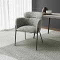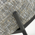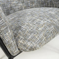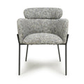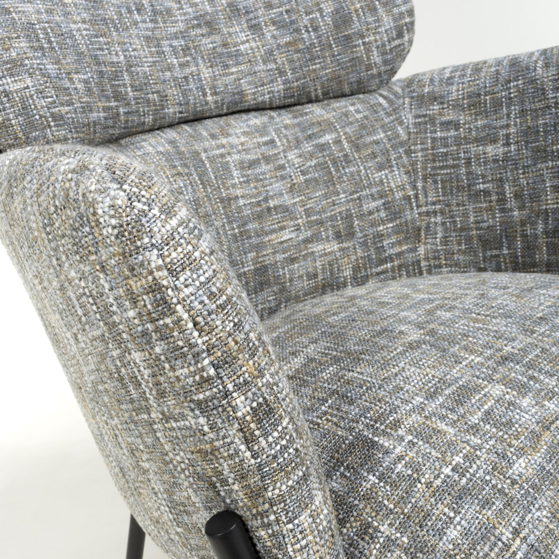 This understated contemporary accent chair comes in a stunning multi-tonal textured woven moss heather coloured fabric. The generous bucket seat provides extreme comfort, and is complimented by high armrests. A cylindrical headrest cushion adds an extra layer of comfort. The seat is supported by a distinctive slim and angular black metal leg frame. Assembly required. Sold in sets of 2.