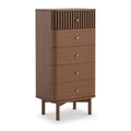 Soho Dark Oak Slatted 5 Drawer Tallboy Chest