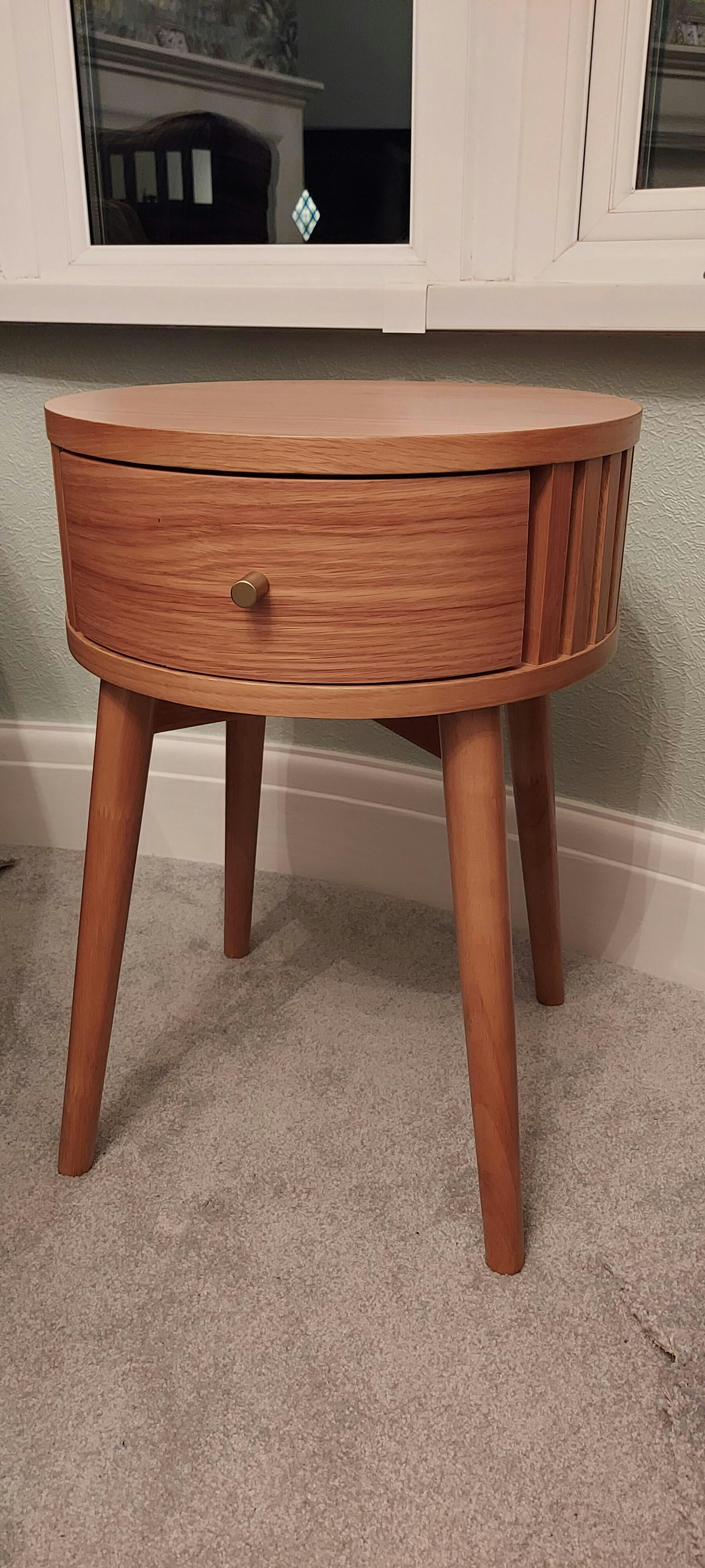 With its clean lines, natural oak finish, and distinctive vertical slat detailing on the top drawer, this tallboy chest embodies Scandinavian design principles that balance function and beauty.